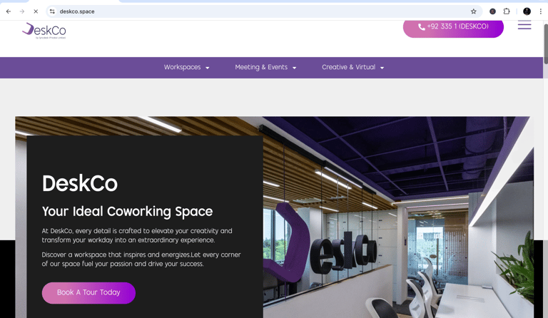 For DeskCo, we didn't just build a website; we architected their digital front door. Our focus was on engineering a seamless, user-centric booking experience that captures the vibrant, collaborative energy of their brand.